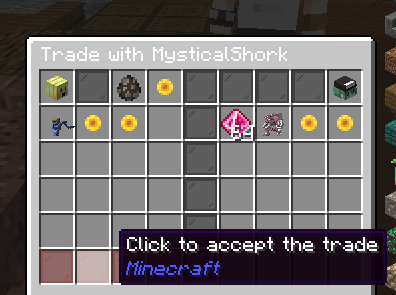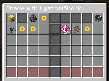 Once you are satisfied with the trade, you will see several red glass panes displayed at the bottom of the trade interface.