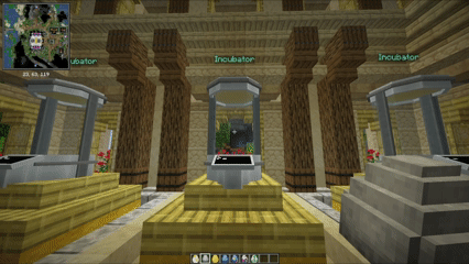 Hatching the egg is a very straight forward process. Simply head to `/warp Eggs`, where you will find a total of six incubators available in the area.